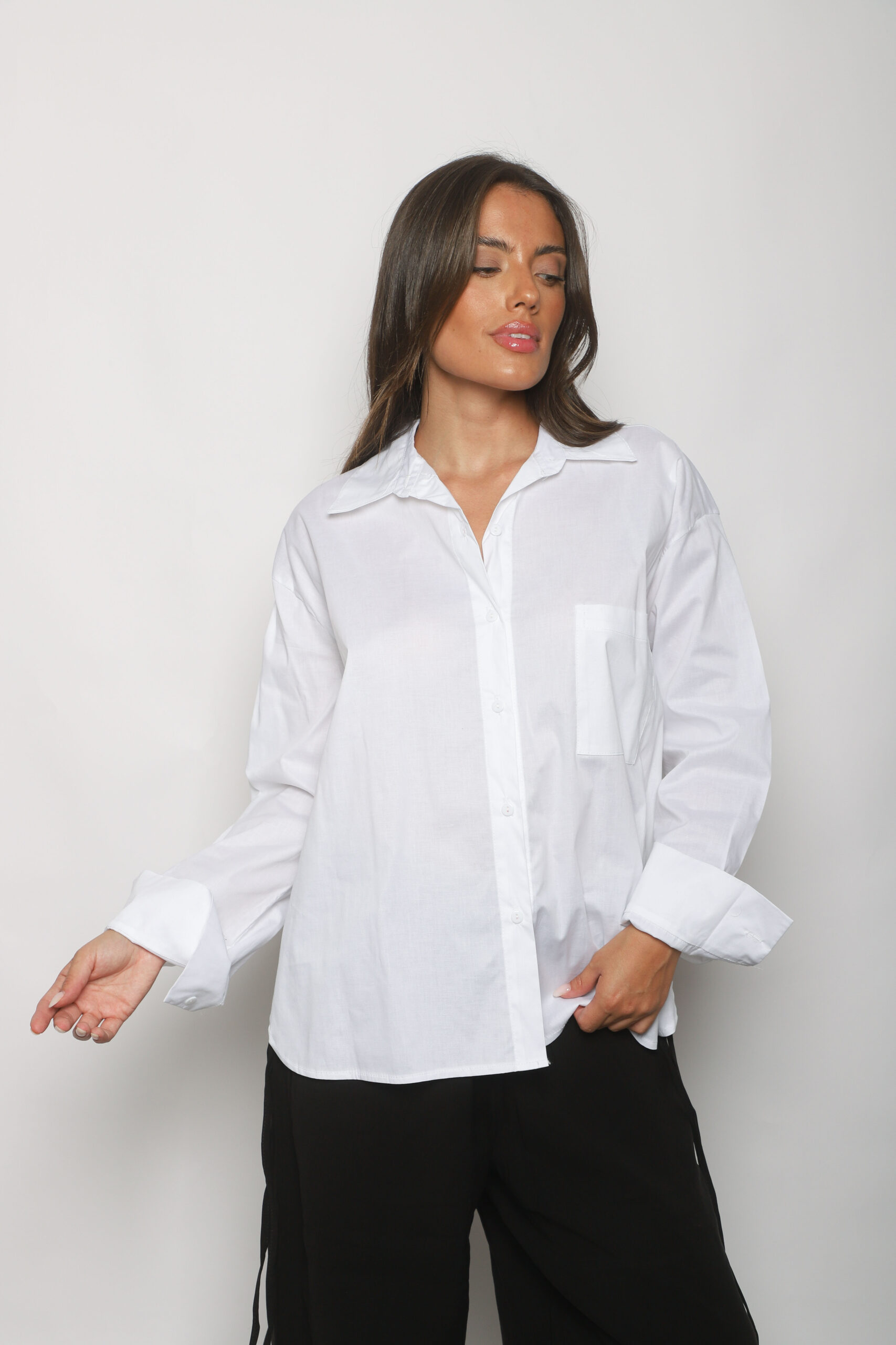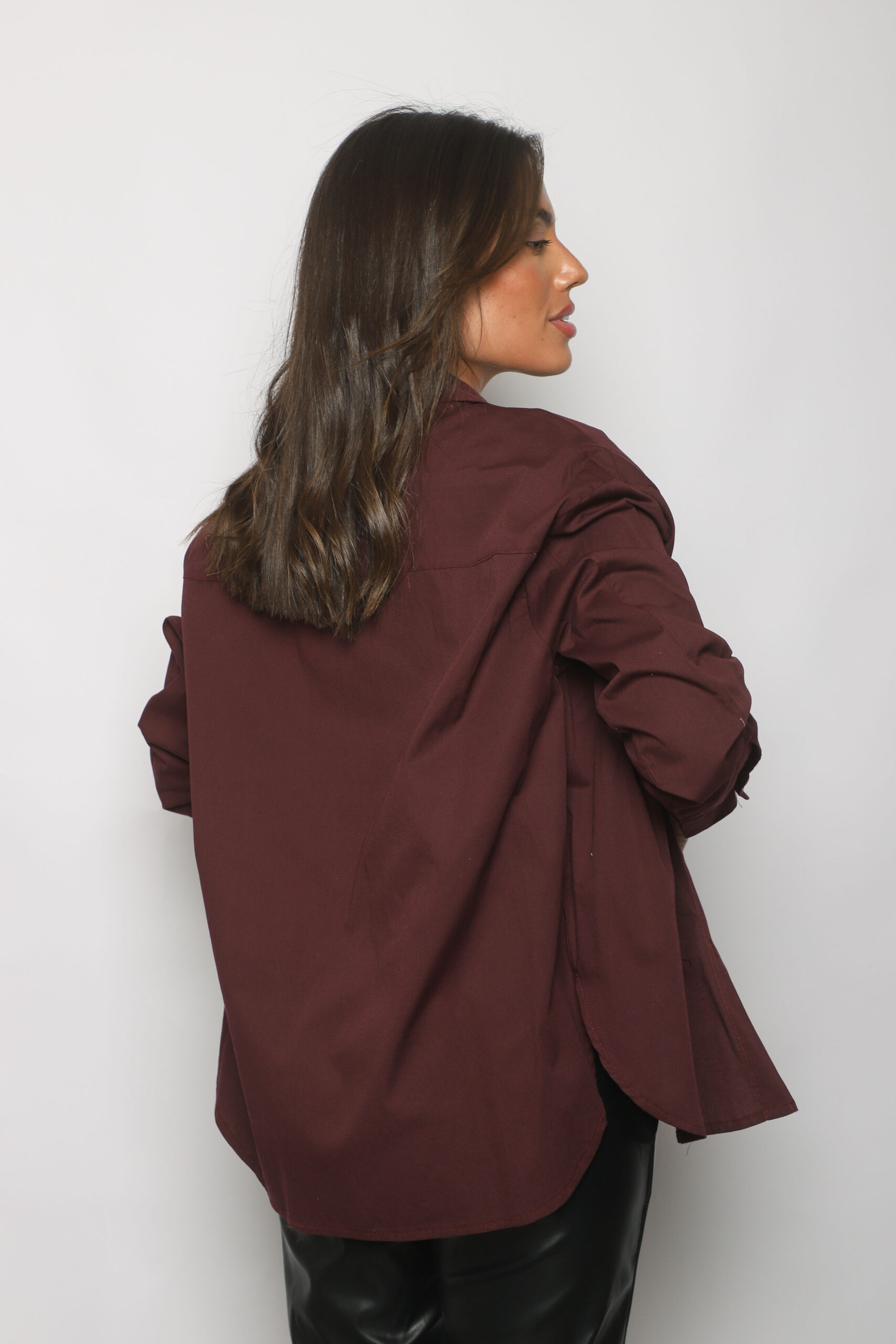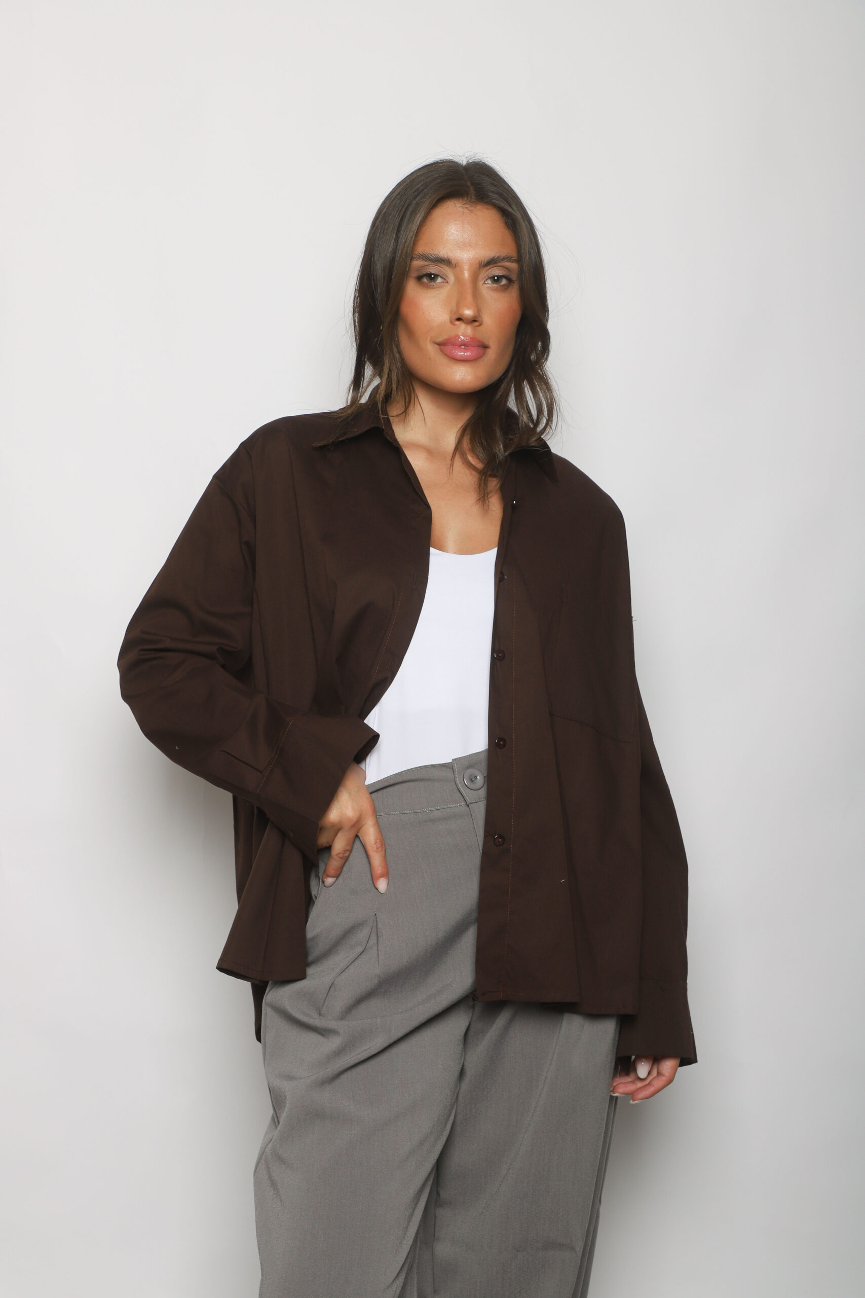 Descripci贸n: Camisa oversized con un bolsillo frontal y botones a tono.