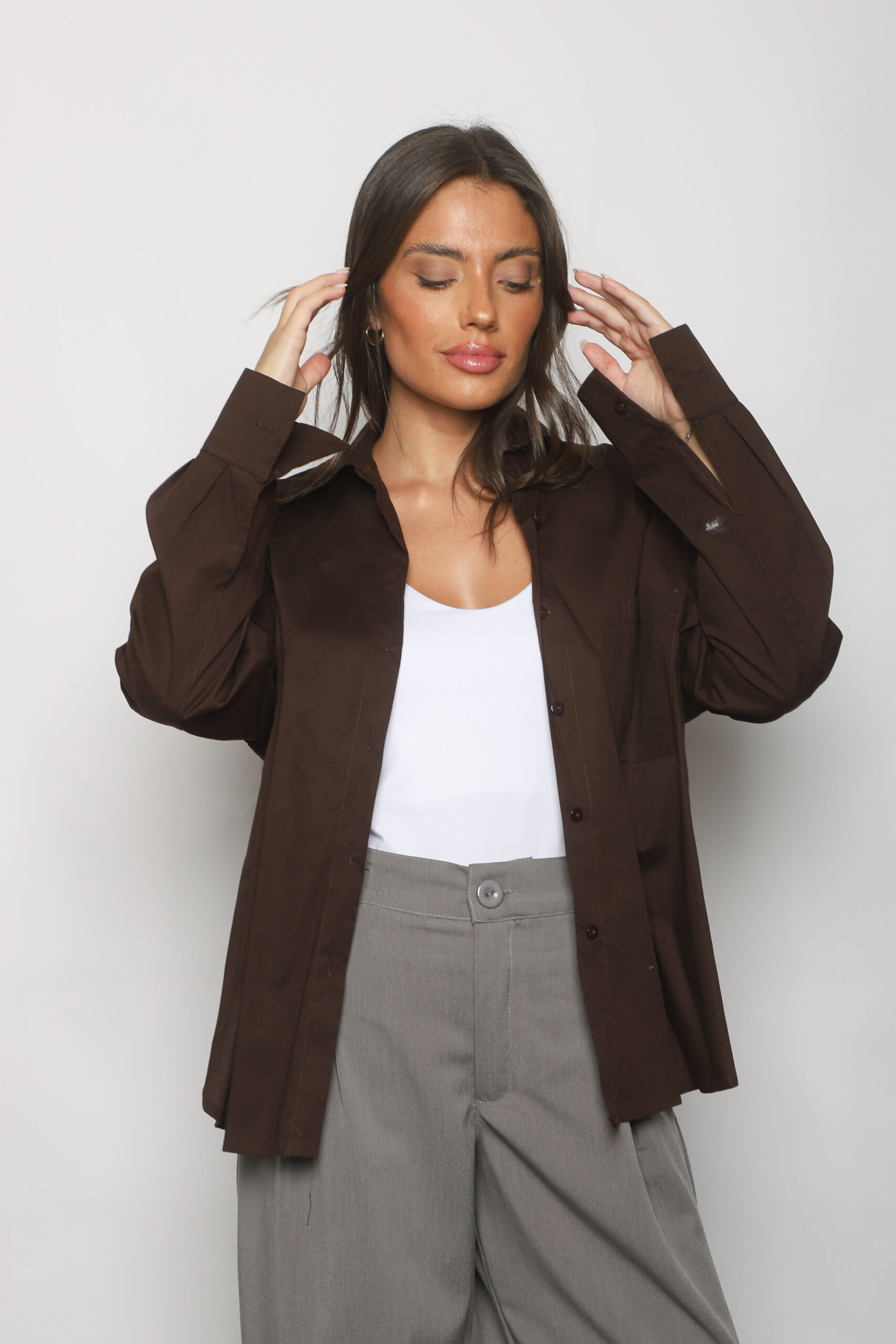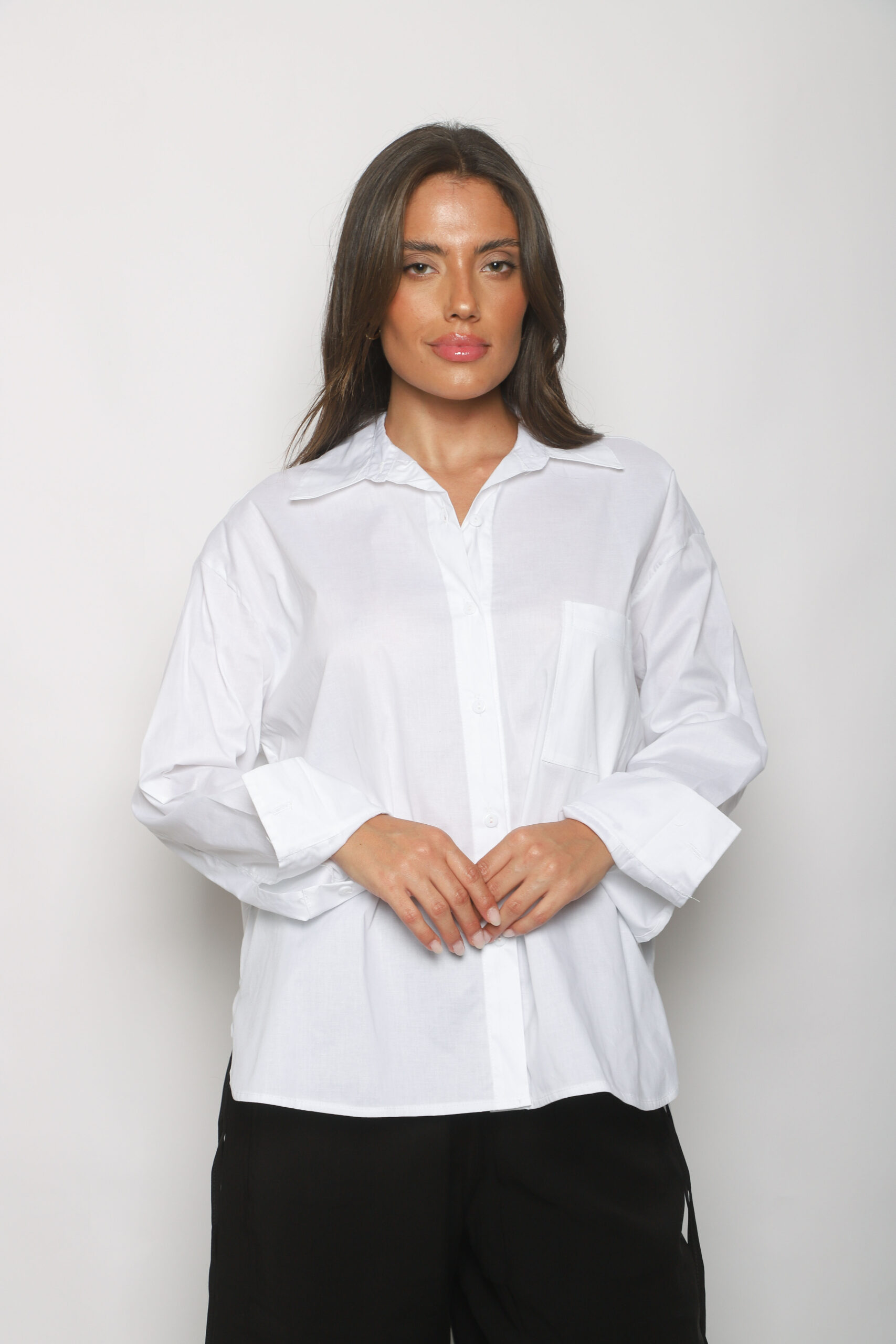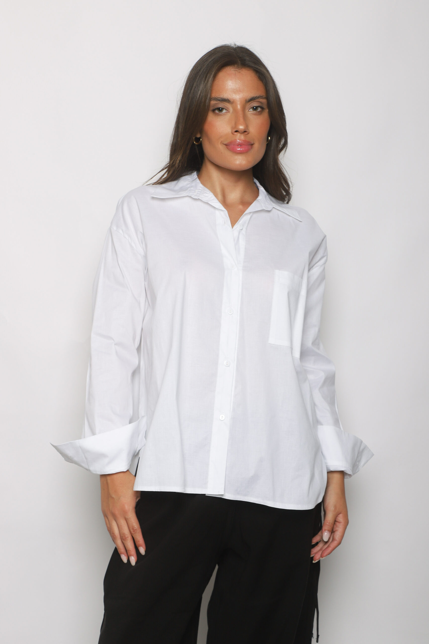 Descripci贸n: Camisa oversized con un bolsillo frontal y botones a tono.