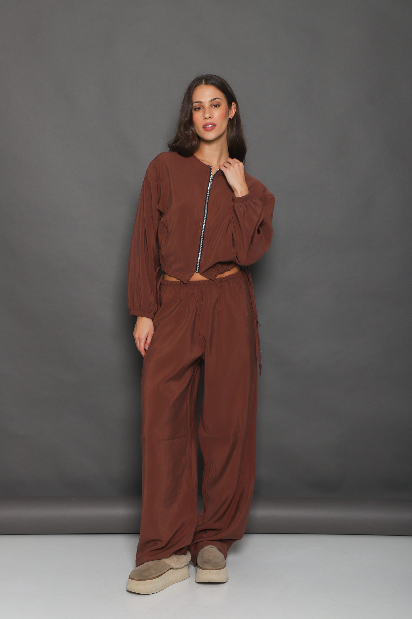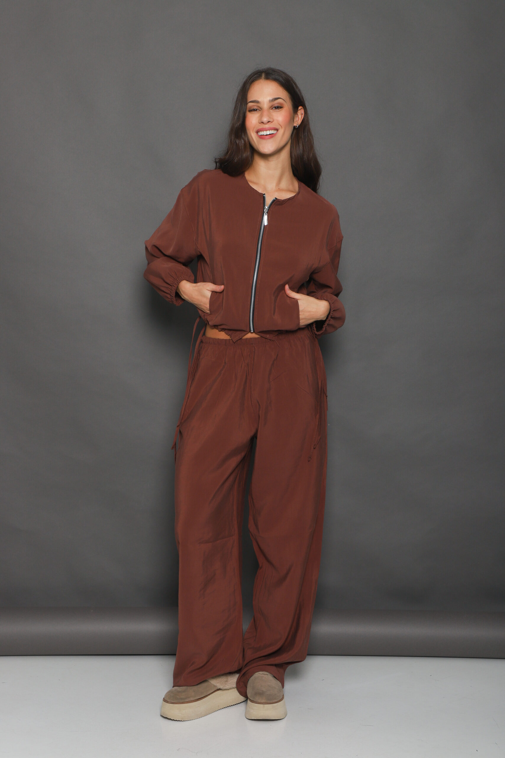 Tela: Venice/ Twil sastrero Pantalon tipo pijamero con bolsillos, elástico en la cintura y tiras en los costados para ajustar