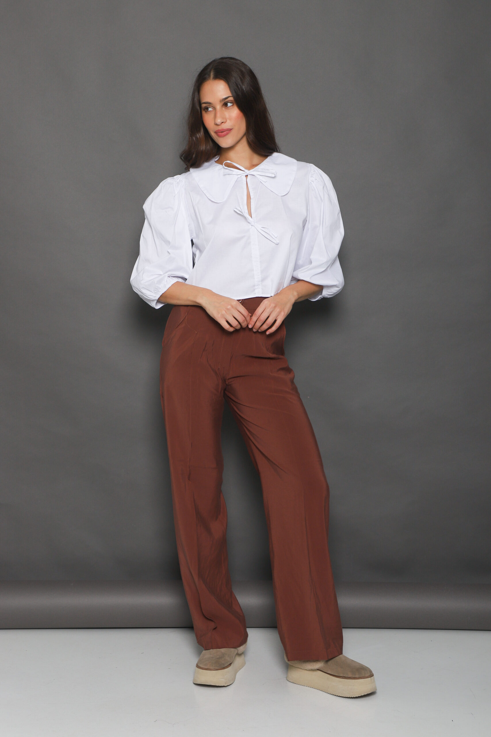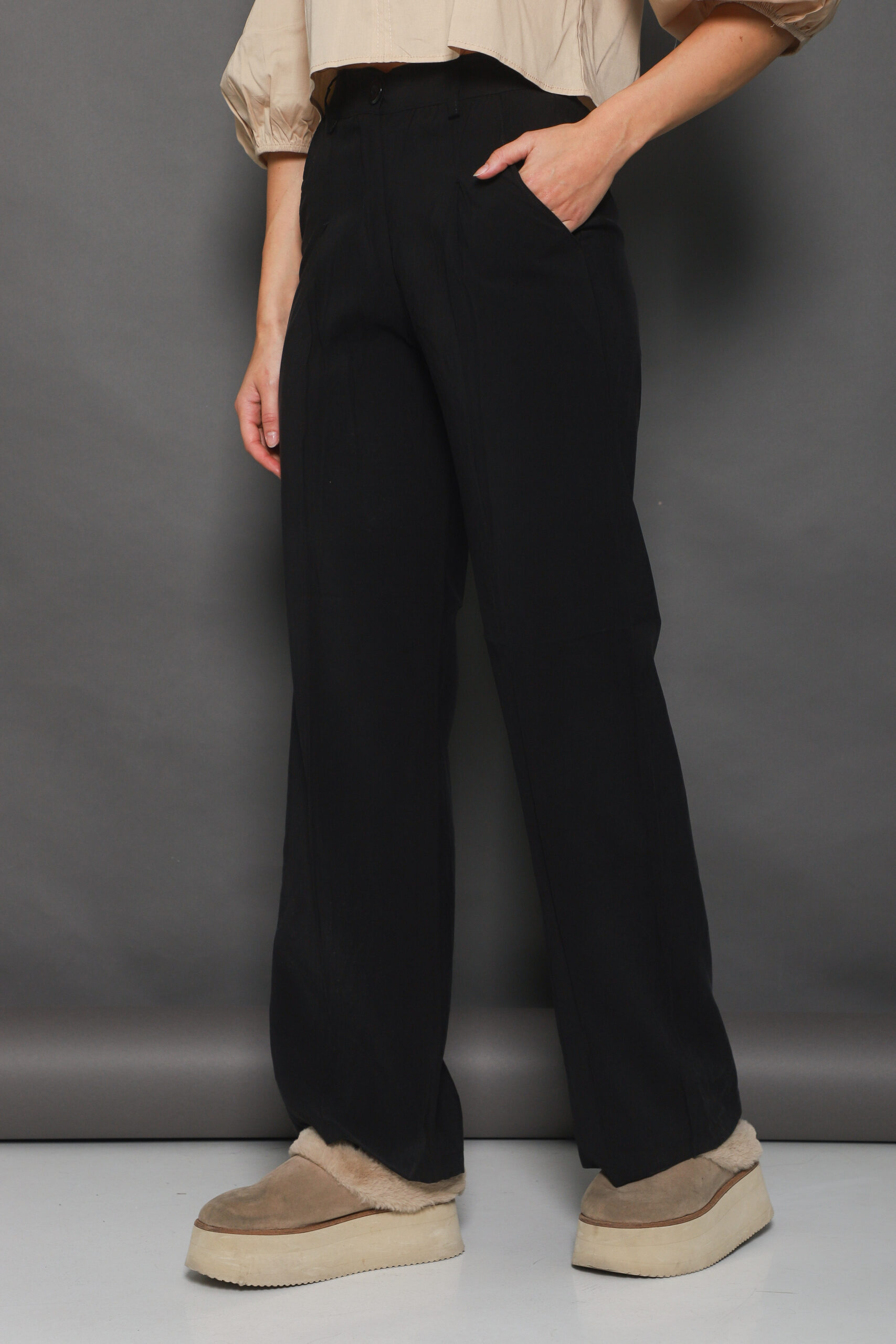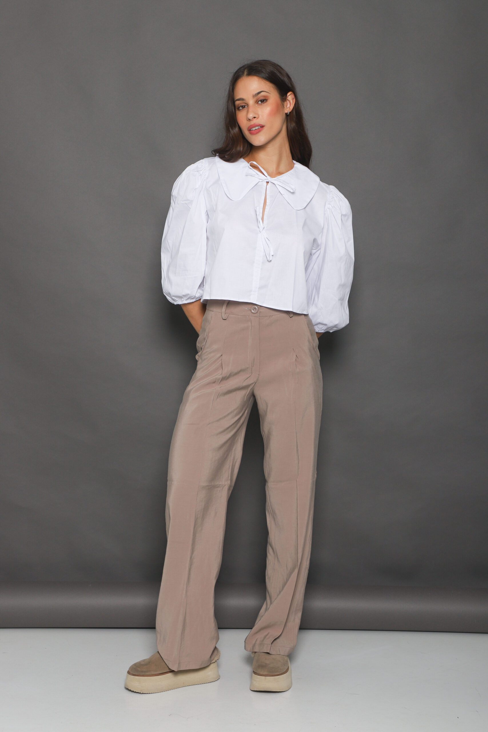 Tela: Venice/ Twil sastrero Pantalon tipo wide leg con bolsillos, pasacintos y elástico en la parte trasera de la cintura