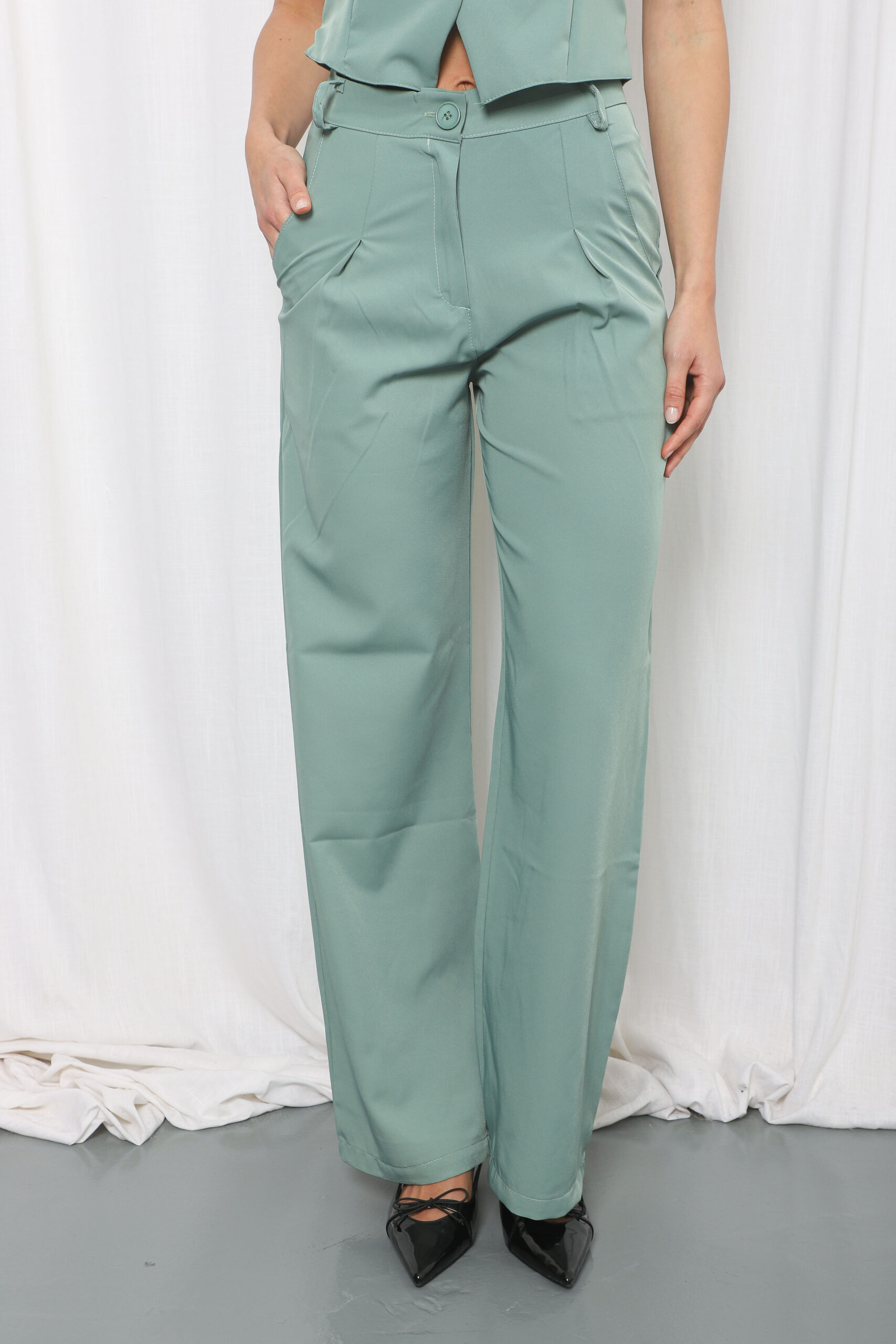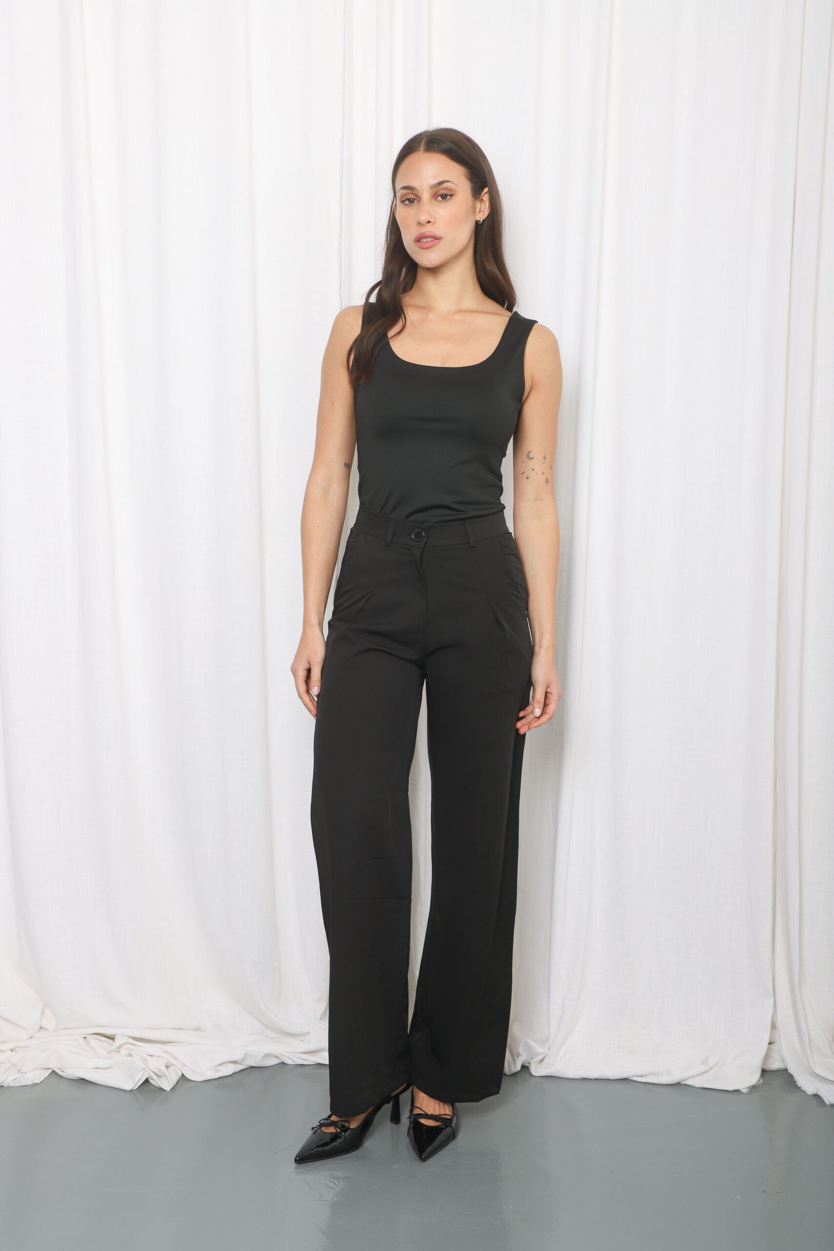 Descripción: Pantalón de cintura alta, es ancho, tiene frunce con elástico en la parte trasera y pinzas